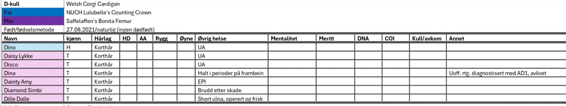 Tidligere valpekull
