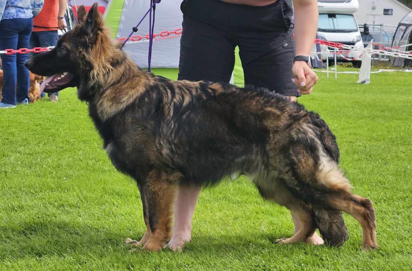 Langbein er en sosial og trivelig hannhund. Han har mye jaktlyst, kamplyst og bytteinteresse. Han har et enormt sporsug. Veldig førerorientert og lett å samarbeide med i trening. Han er også hard og seig og vet hva han vil i hverdagen. Han gir tusen prosent f... hvis han ønsker noe, da går han for det, nesten koste hva det vil. Det er jo det som også gjør at han er en deilig arbeidsmaskin i andre enden.